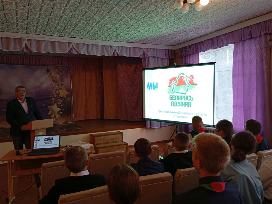 В нашем учреждении образования прошёл единый урок, посвященный Дню народного единства. Цель урока -- формирование у учащихся уважительного отношения к историческому прошлому Беларуси, пониманию учащимися смысла и значения государственного праздника. Учащимся было рассказано об основных исторических событиях по присоединению Западной Беларуси к БССР. Ребята вспомнили художественные литературные произведения об этих событиях. Учащихся поздравили с Днём народного единства.-